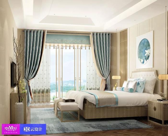 卧室窗帘:对于卧室的窗帘建议选择隔音和遮光效果好的, 厚棉麻类的看起来不但有质感,而且还能增加室内的温馨感。(如果是孩子房可以选择窗纱类等时尚潮流的窗帘。)